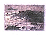 A young Craig Peterson (left) and the combined weight of the world: kneeboard, camera gear, and framed backpack. The pack wasn't just for walking between cars and jets. A wave (right), somewhere, someplace. Still out there... |