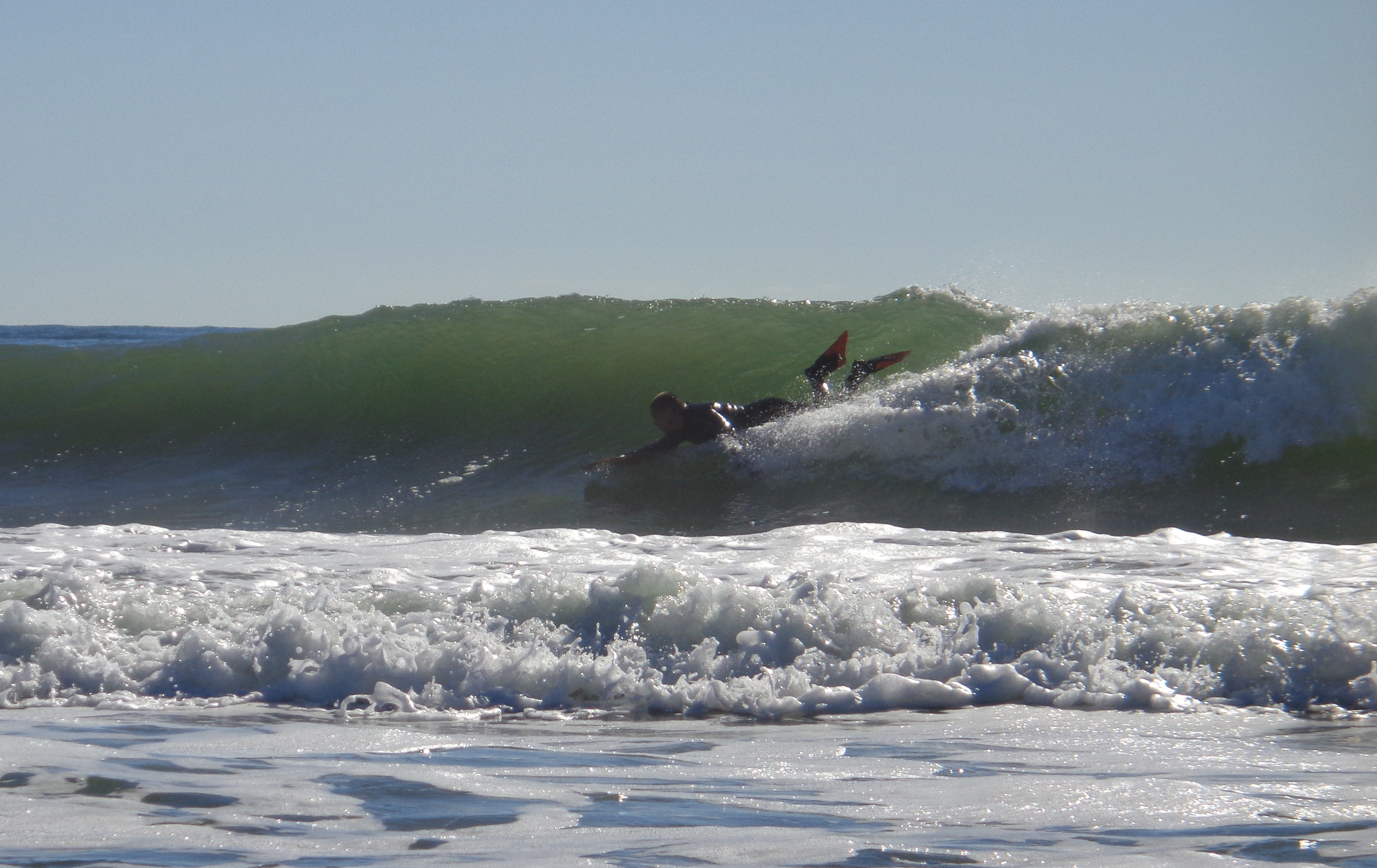 Yes, A wicked thin 6' Paulownia alaia. I went like 3 for 100 on standing up on it when I finally figured out I'm tad big for such a small board (5'9" & 205lbs). Then on a similar day at this same spot I found that if I could get into the wave (the hardest part paddling in without fins) I co...