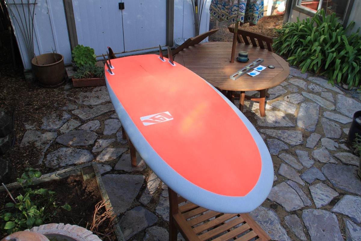 So far, I've ridden it in some pretty good waves, and I'm declaring it a total success and a big step forward on my Mega Platter design explorations, which was funny, as I'd thought I was past any major innovations and content to just whittle away on the details of it? But this L41 has jumped a few levels up, and I can see that there is much more to be learned and explored. I picked the color combo as a sort of 'nod' to the board Greenough took to Panama long ago, and it's all turned out better than I could have hoped for.
