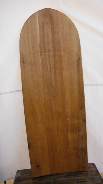 It has that soft convex roll the length of the board and no rocker. I suspect he used some cupping in the boards to get so much shape from fence boards.