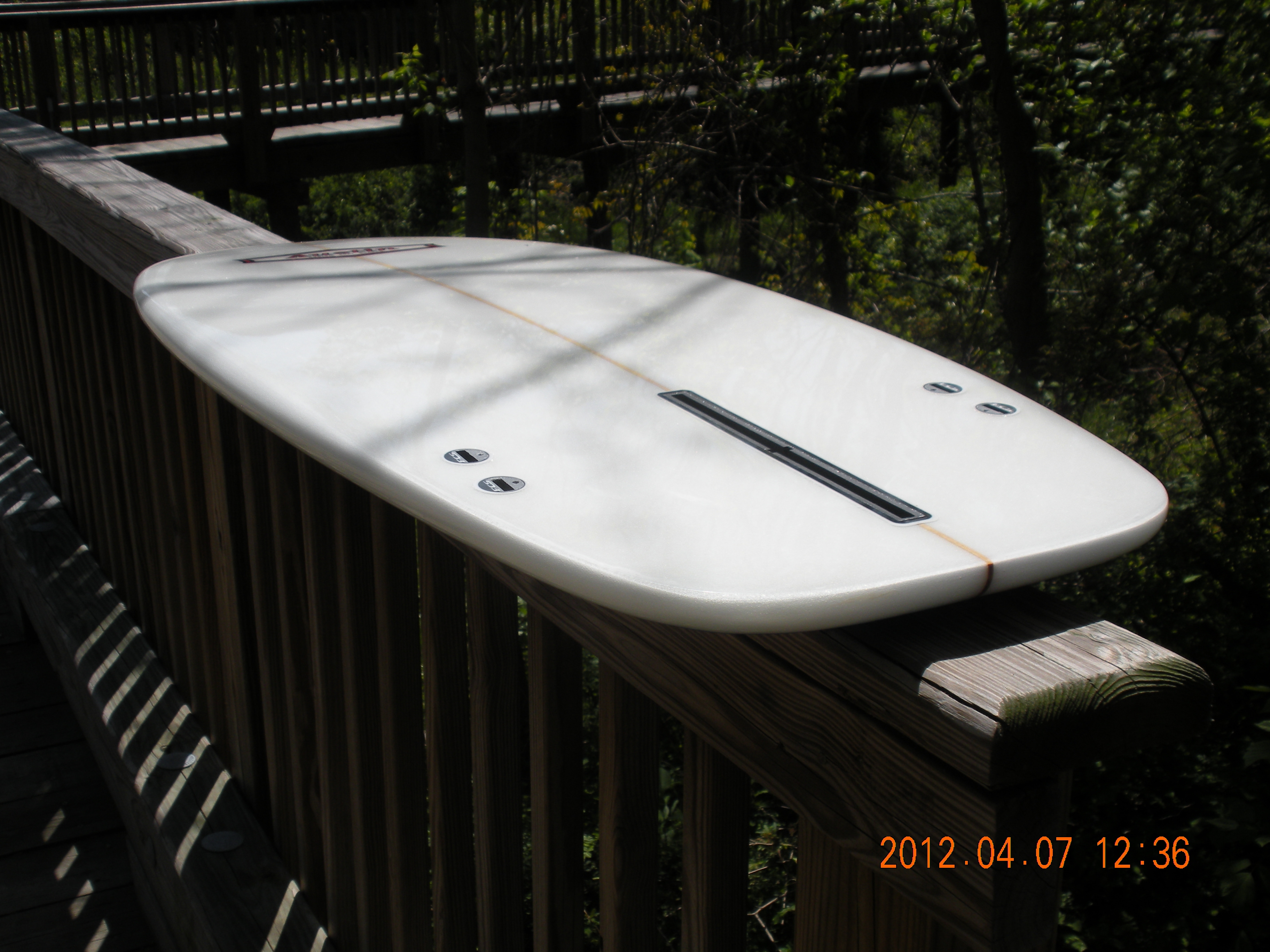 Minor flotation addition would be my guess. Youcould also get away without padding the whole board. What is the light patch just below the door ahndle - some sort of hand grip? How do these thick boards ride in really hollow waves?