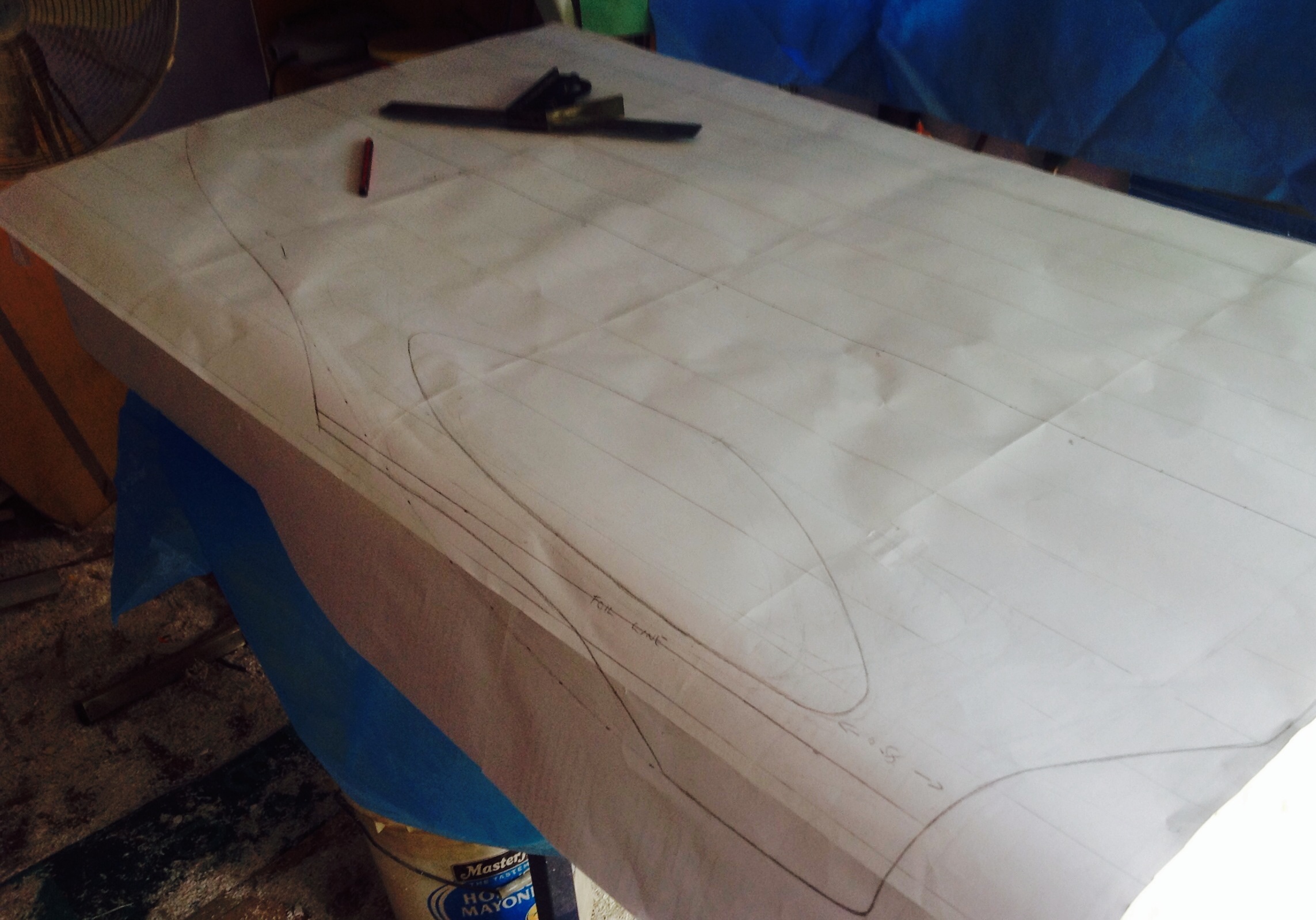 Here's the basic planshape, it looks too wide in the tail but remember the sides are rolled down so it won't be as wide as it looks.