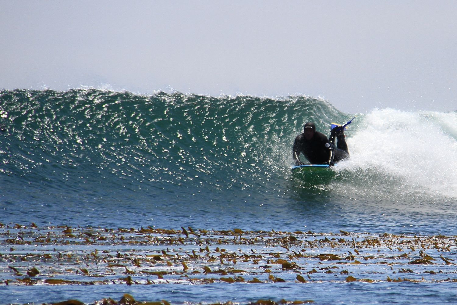 Sought out and scored a nice little one day south that was pulsing up............brought along my two Mega Platters, the current one and also my 'last' one, the one that had a bit more tail rocker. I had all manner of buddies trying out both boards all day long, and the fun meter was noticeably pegged. At the end of the day, the consensus was in: Put the tail rocker back IN. The new board, with less tail rocker, was judged much faster, but not as loose. The next one may be some mix of the two. Here's a few photos taken throughout the day...