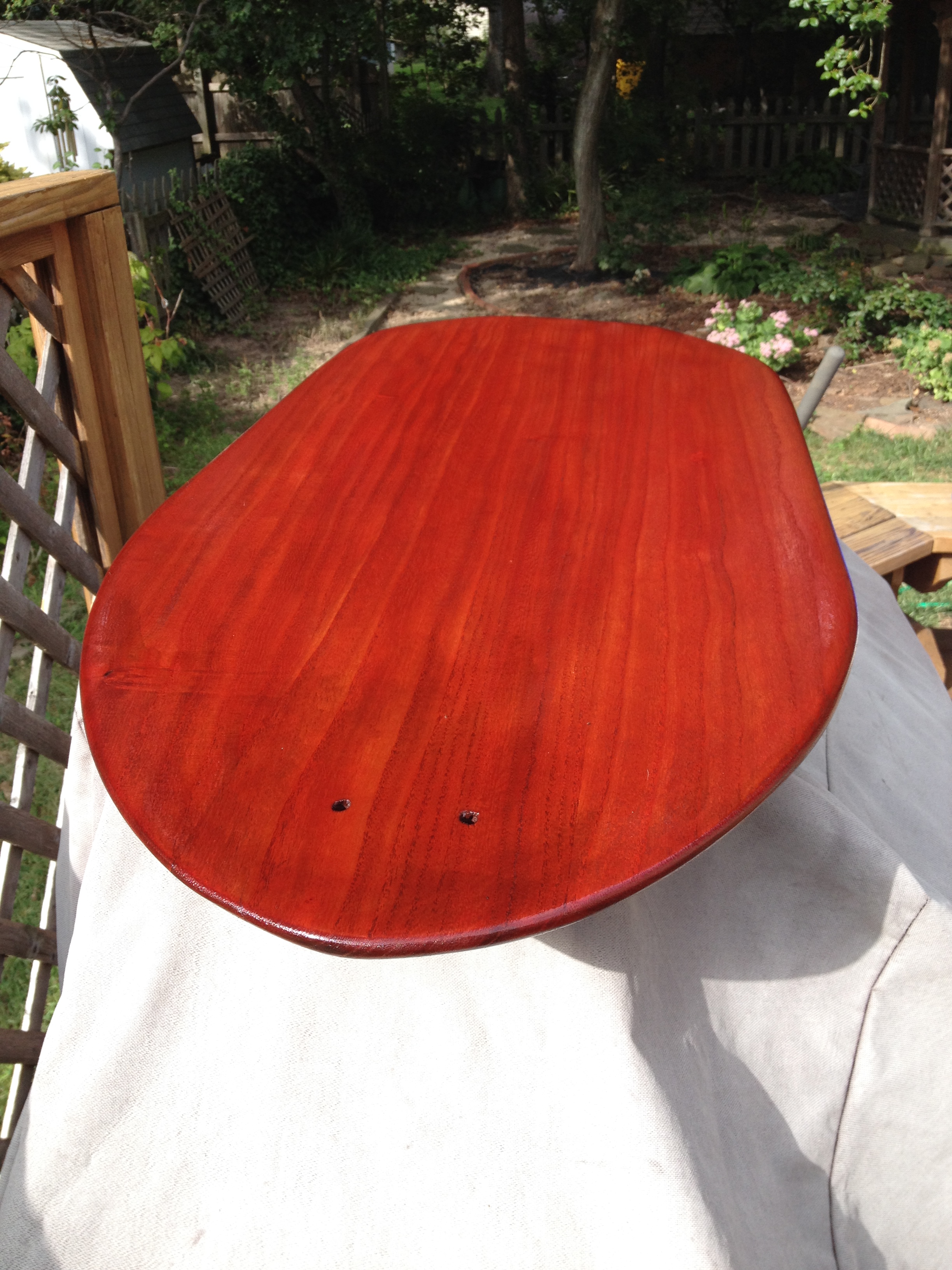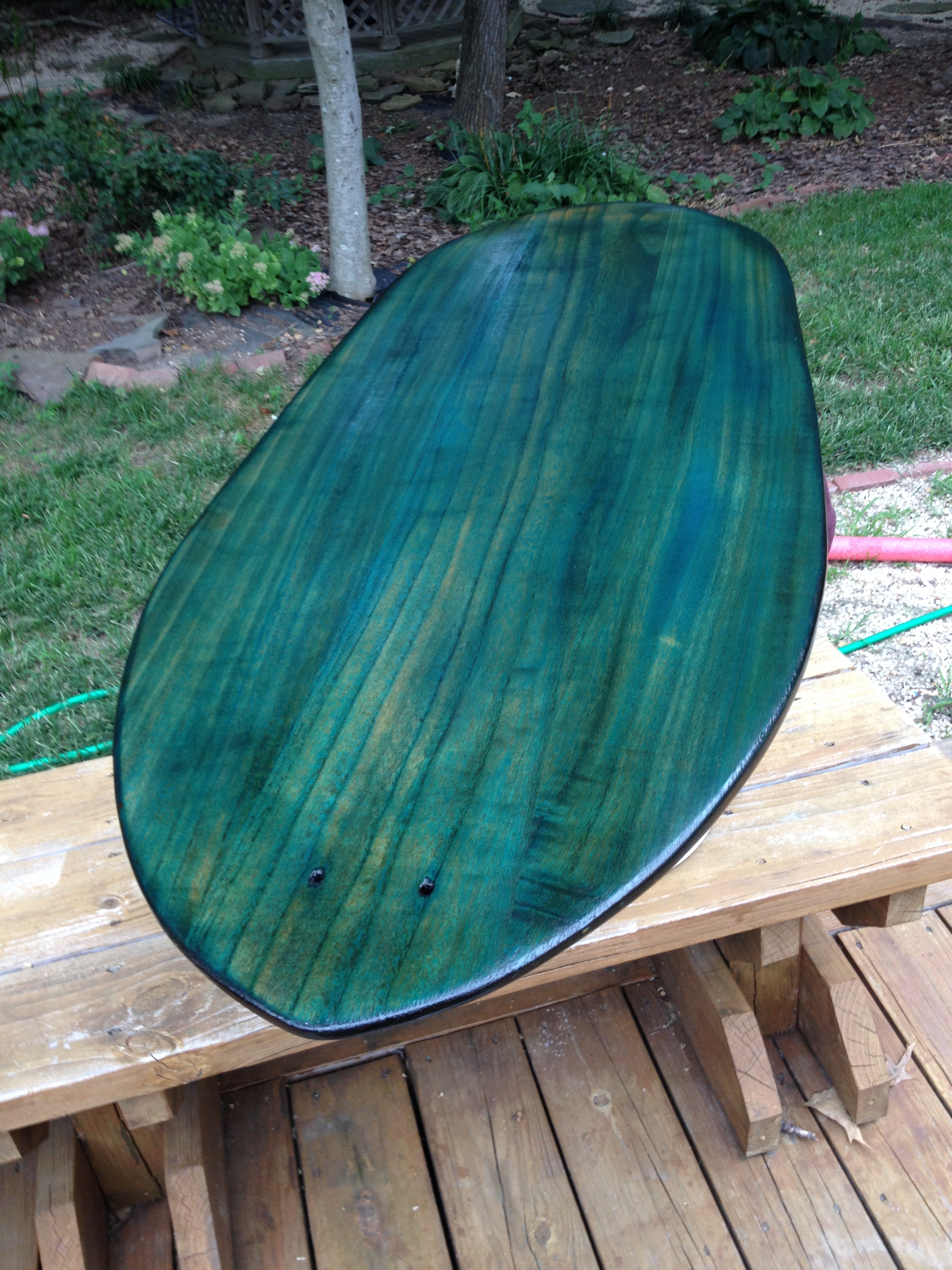 Here are some pics of 2 boards I made last summer. Paulonia boards joined with pieces of carbon, dyed with wood dye and finished with spar varnish. Fast and Fun. Holes in the nose are for the leash cord.
