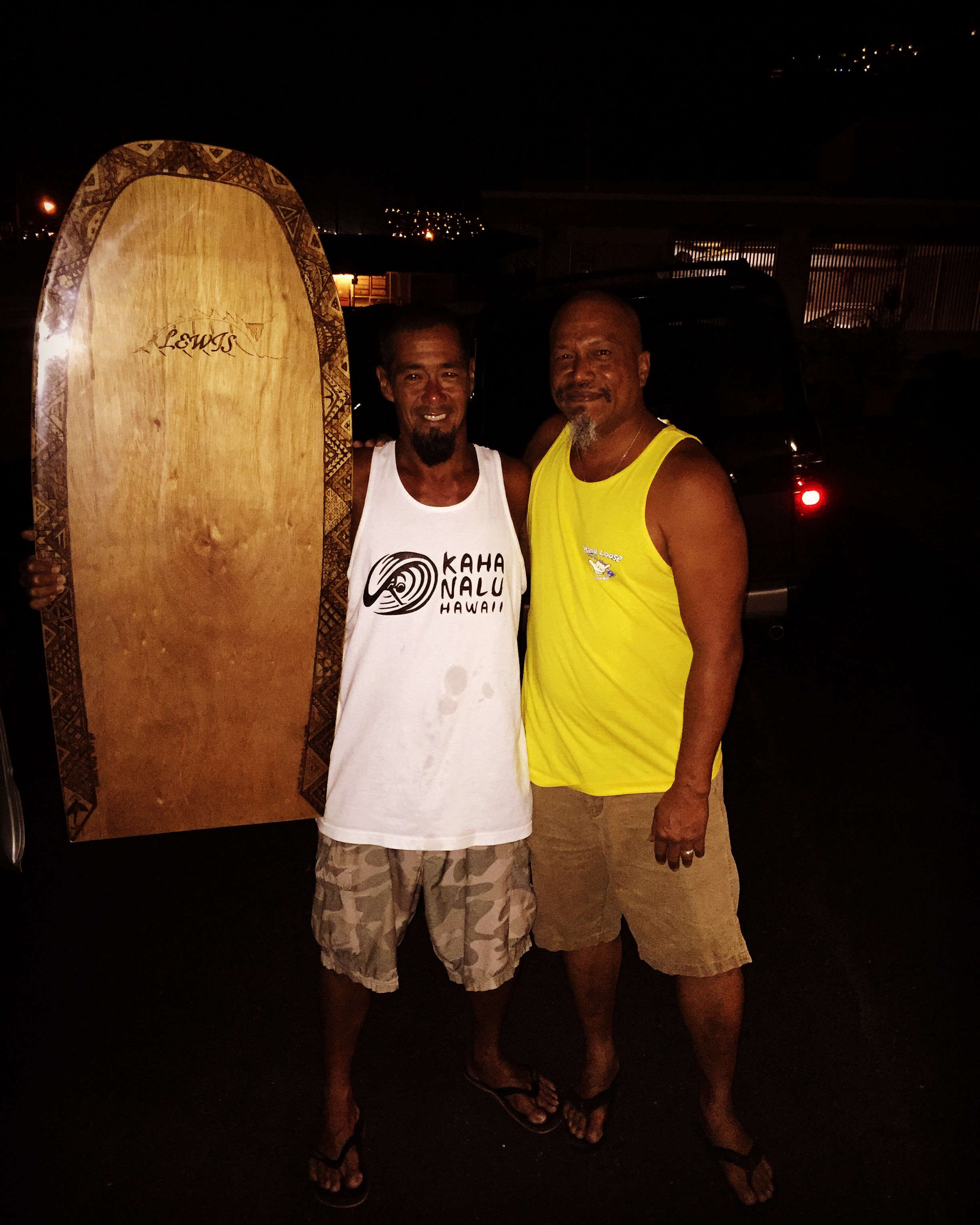 B.L. a happy custumer picking up his Hawaiian Papa Paepo`o Board...
