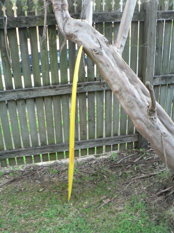 Here is board 3 from the series, I wanted to see if I could go thinner and narrower and retain the speed of # 2. It wasn't as fast as I wanted & harder work. It would be interesting to ride it again and see what I think but it has gone south. Note the hard rails on the tail.
