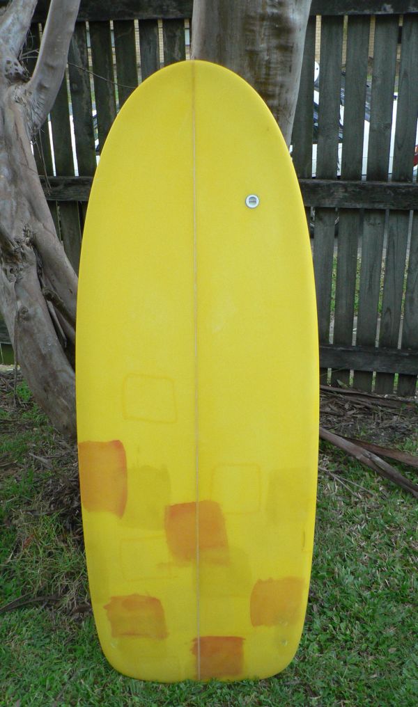 Board 4 was a compromise board, more volume, not as fast but I've had some nice tubes on it. Same dimensions but the rails weren't as hard in the tail. It also has a handle. It is a good all round board. I mostly have ridden this board finned. Fins allow night tight arcs.