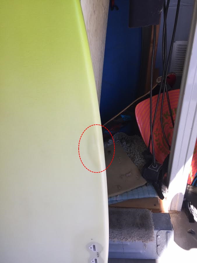 The first Thomas Patrick T-Belly G4. EPS/epoxy construction (Double 4oz deck+ Single 4oz bottom), this stringer-less speed sled is durable, light, responsive and fast. Comes with quad FCS Fusion boxes. Takes regular FCS fins. My personal prone board for almost 2yrs, and yet has only one ding. A small delam on the rail. (see photo) This has not grown in size in over 12 months. Decided it would look worse to repair then to just live with it.