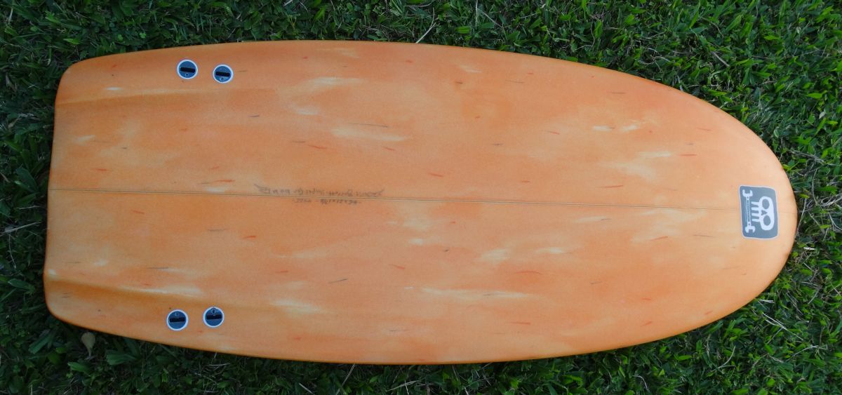 Board 4 was a compromise board, more volume, not as fast but I've had some nice tubes on it. Same dimensions but the rails weren't as hard in the tail. It also has a handle. It is a good all round board. I mostly have ridden this board finned. Fins allow night tight arcs.