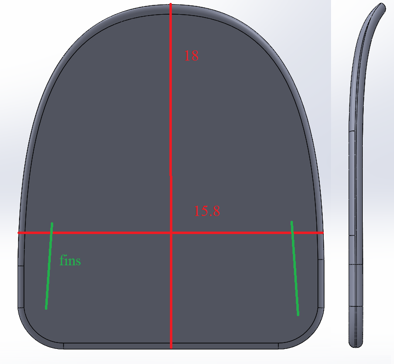 las medidas están en rojo , sería de 18 de largo por 15.8 de ancho, si te fijas tiene roker, tengo que aprender ha doblar la madera, esta curva sera para agarrar el micro paipo del nose como un bodyboard y poder apoyar los codos de ahí que sea 15.8 de ancho, la idea es montar 2 quillas pequeñas