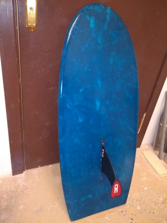 I had this half-finished paipo and today I was able to finish it. It is a thought in the Fins of sup fcs 3d largue, it is a fins that I had for a long time and I wanted to try it, I do not know how it works in the water, but if it is not tested it is not known. The paipo is a 43.5 x 18.5