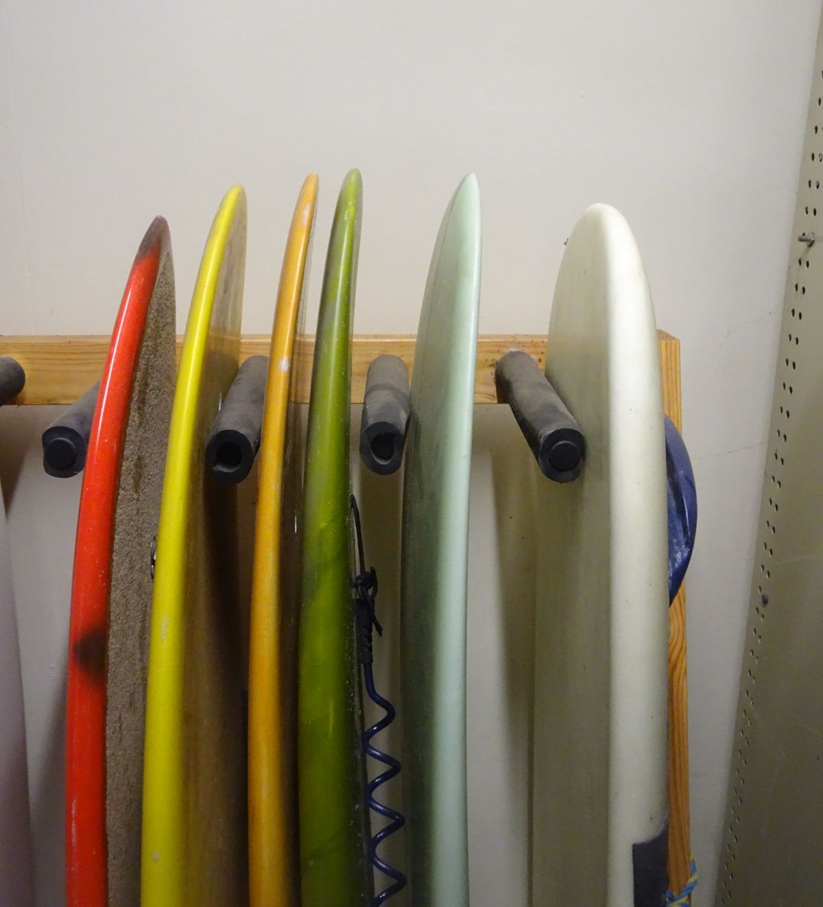 The two white book-ends, the bonzer and the handled Quam, have only been ridden with fins.