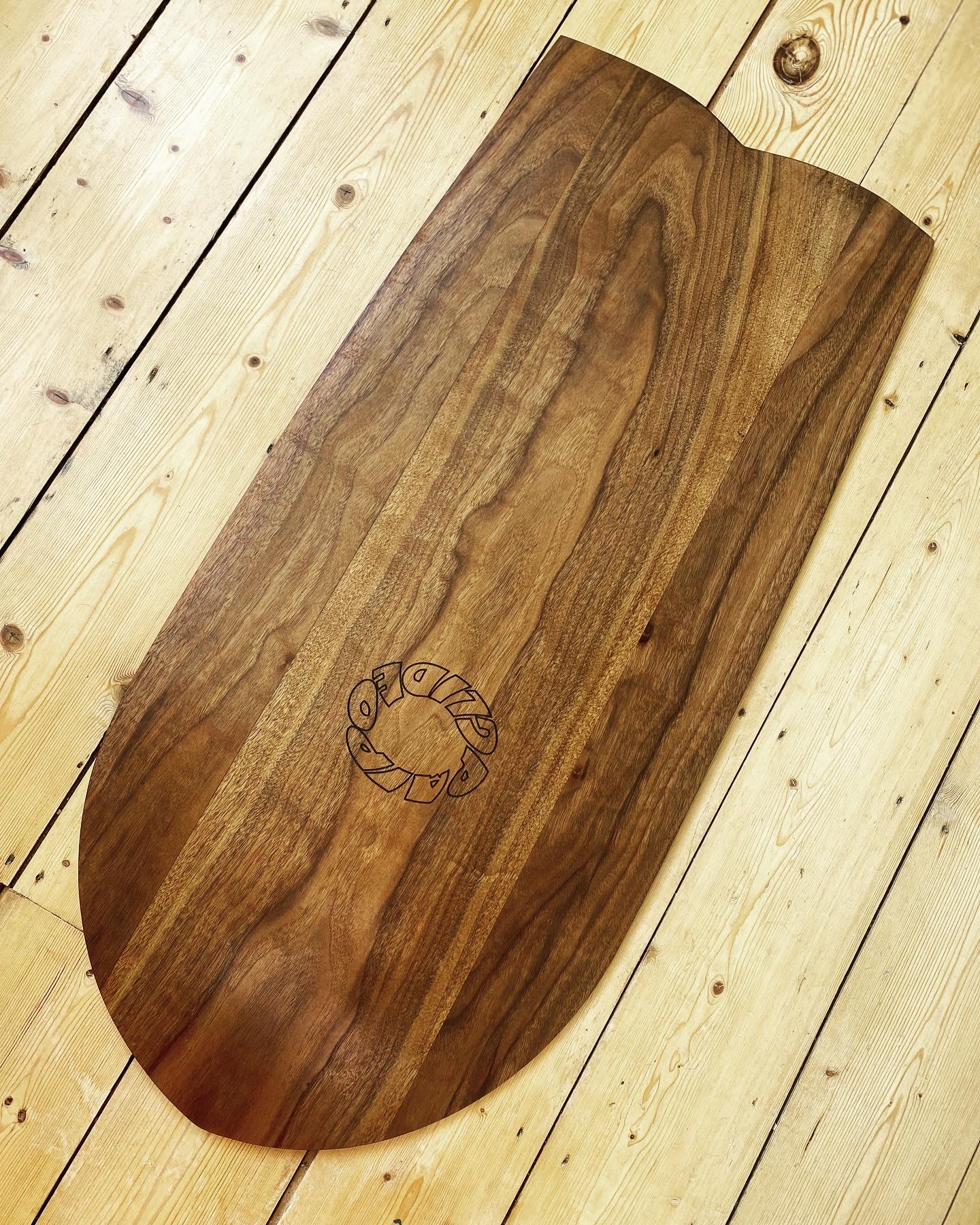 Solid walnut 40.5" x 19" and 15mm max thickness. Convex profile top and bottom with very slight natural rocker.