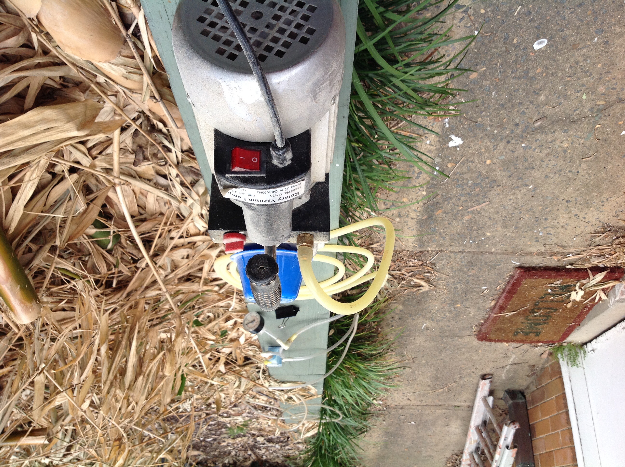 Here's pics of my basic vac pump setup, there's the pump, two tubes, a filter and a gauge.