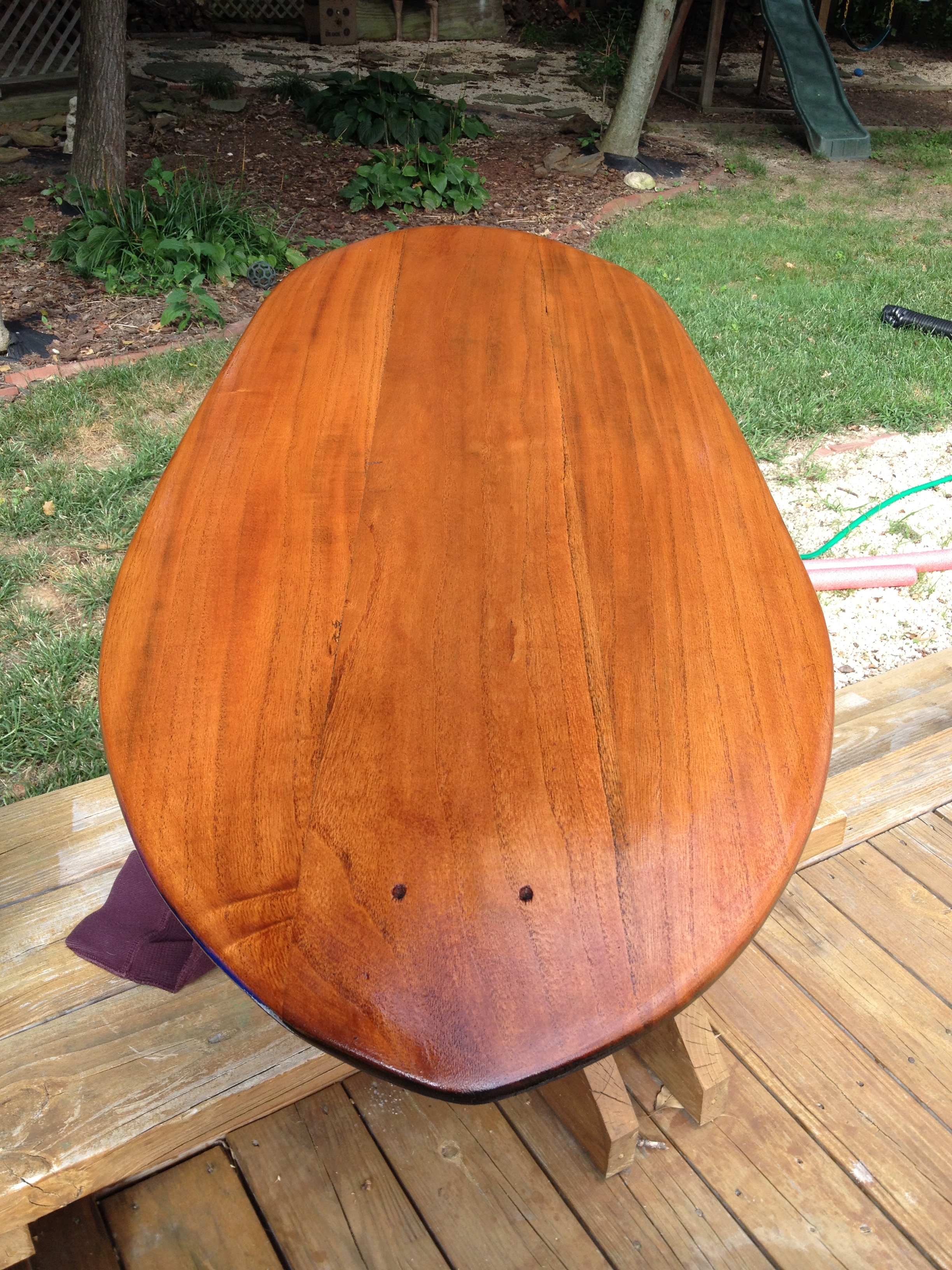 Here is another one...more recent. Paulonia boards on the outside with poplar in the center...basswood inlay between those. Used a regular joiner for these but Tung oil finish instead of spar. Leash plug and center fin plugs as well. 48 inches long and 20 inches wide...3/4 inch thick.