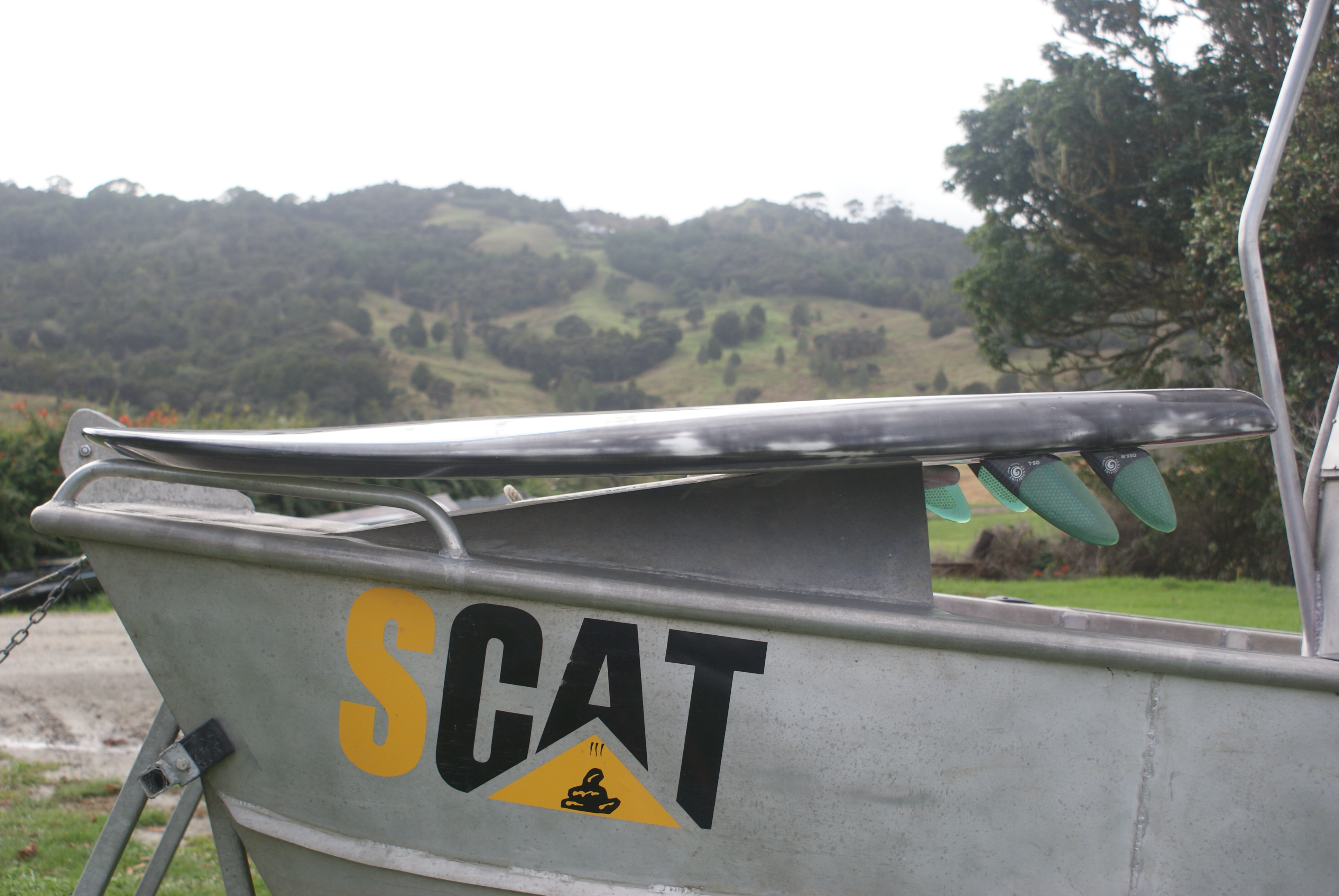 hi Krusher, all glassed,finboxes in, just sanding back the fill coat. going to have to do a wee bit of art work as i had an accident! wind blew the blank off my shaping stand outside and dinged it. had a web dredge for scapple (think thats what its called) and its new zealand equivalent. saw to use what we have as polyfilla. no worries filled ding and a few scratches and little holes - first lam coat....... polyfilla goes brown. now have a board which looks like an eighty yr old with bad sun spots. only have black pigment so the board may have an unusual distressed look. justin
