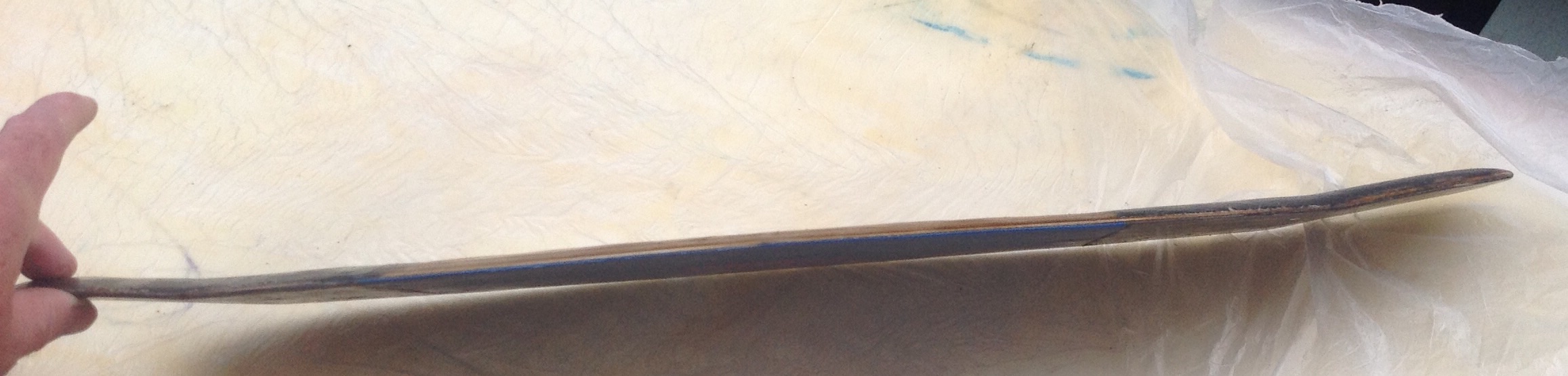 The last one is a skimboard with 2 ply strips as strengtheners on the deck with foam over them.
