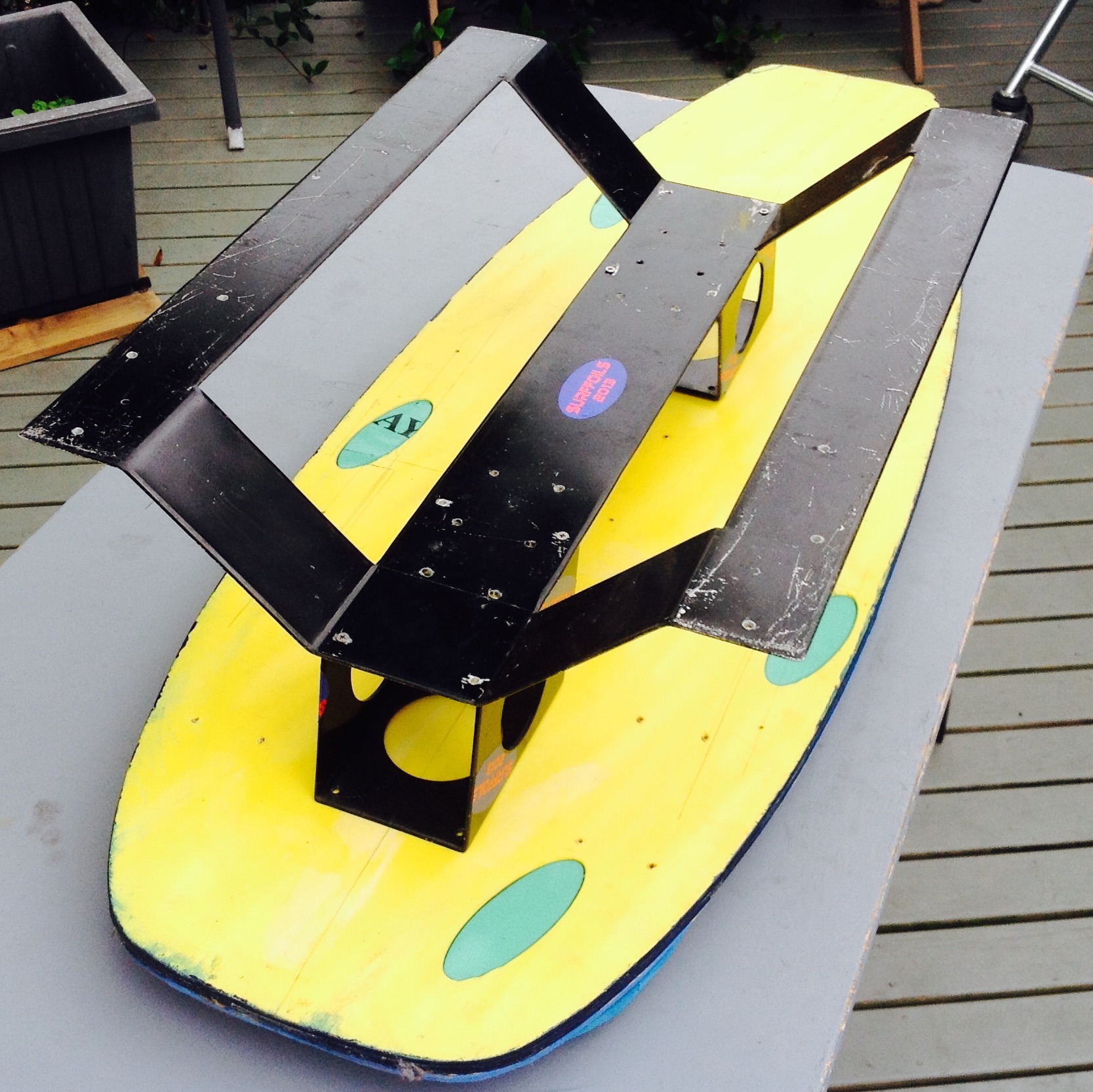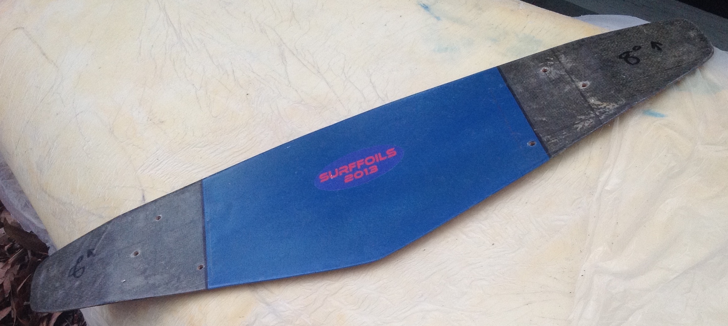 I'm keen to talk foil theory but here's a look at a retro zombie board I'm going to ride tomorrow, with the old wood and rubber topped board, new black square struts and a foil from 2 years ago.