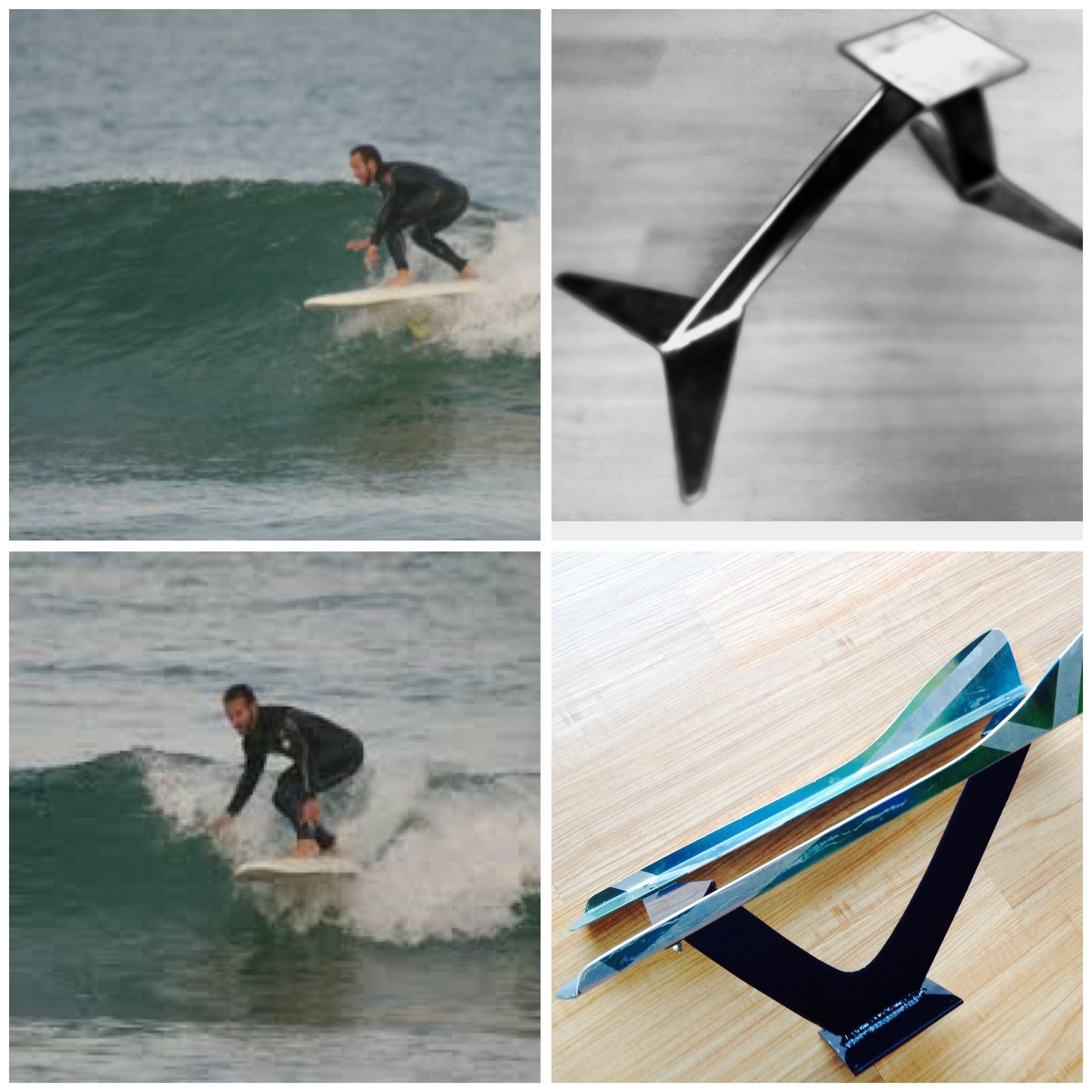 Hi surffoils ,Pic 1is exactly were i want to go.Foiling on one wing flying down the face,i get goose bumps thinking about it. I feel a prone rider can move the center of gravity close to the center of lift in that condition, holding high to build potential energy to drive out of there,that zone and higher is were i live ,the board has to be robust to take the beating you get in that zone.I did see your post on the big wings,the problem with foils in a dynamic zone like a pitching wave is the huge speed differential ,and having foils poping out has to be dialed into the board to control.The more you know the harder it gets to move to the next step.How big is to big ???