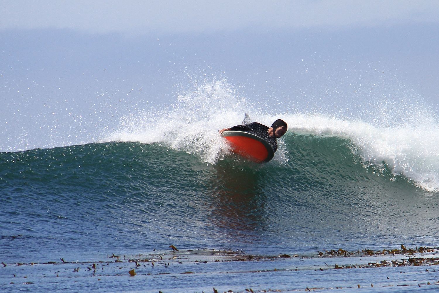 Cool stuff! My friends have been riding stand-up/kneeboard hulls for years and have been victimized by my chiding. Then one day I was reading an article about liddles boards and a light came on, the things that made for "lame" riding stand-up/kneeboards could be the very thing to get me deep and high in the pocket and rail to rail easily. Been hyped on the design ever since. The board I showed pics of has forward displacement to a dual concave (flat) and then vee with concaves out the tail. The bottom rails are chined with my typical 60/40ish super pinched hull rail.