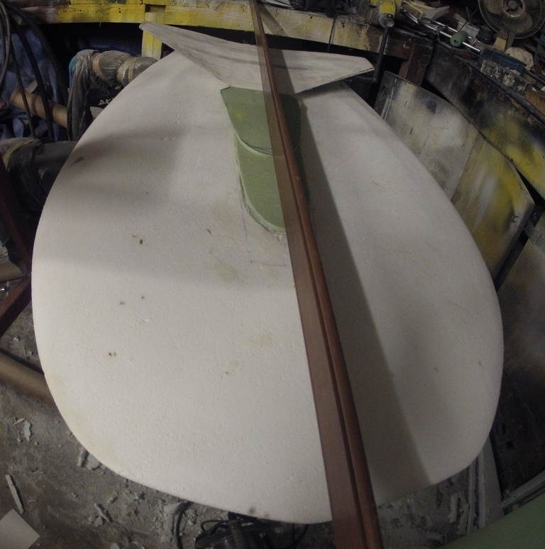 The torsion box has been glue in,and i am close to the finel cut on the board. this board will be very thin with hard rails,i am trying to keep the foil as light as posible ,with foam box beams ,its a new method to me!! but thats how we grow.