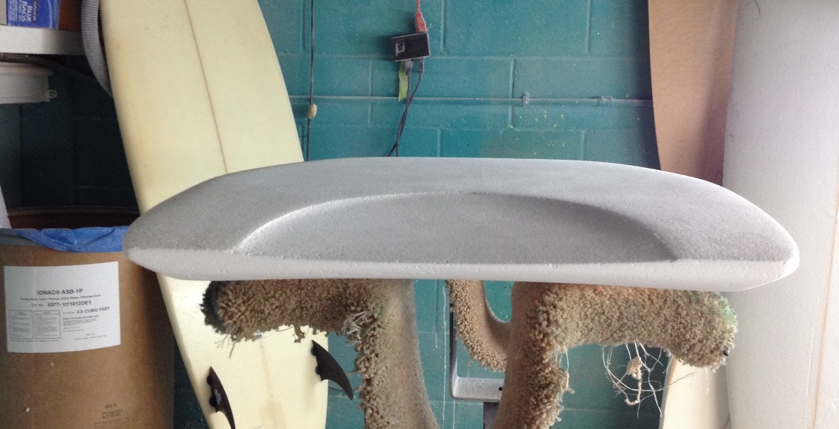I was surprised by how stiff the previous TBG2 was, despite the absence of a stringer. A little flex is a good thing in my book, so this time I'll go with one layer 4oz E-Cloth on the bottom and one layer 4-oz E-cloth plus one layer 4oz S-cloth on the deck. Still no stringer, but no VectorNet, Carbon Fiber or other costly high-tech stiffeners either. Everything else has been left unchanged. I really like how well the TBG2 performs, especially how easy it duck-dives. Plus the flat nose provides the perfect place for hand placement. Most exciting thing is that I've been able to negotiate some favorable pricing with Marko Foam and my glasser which will allow me to market the TBG2 for under US$300. That's a real breakthrough.