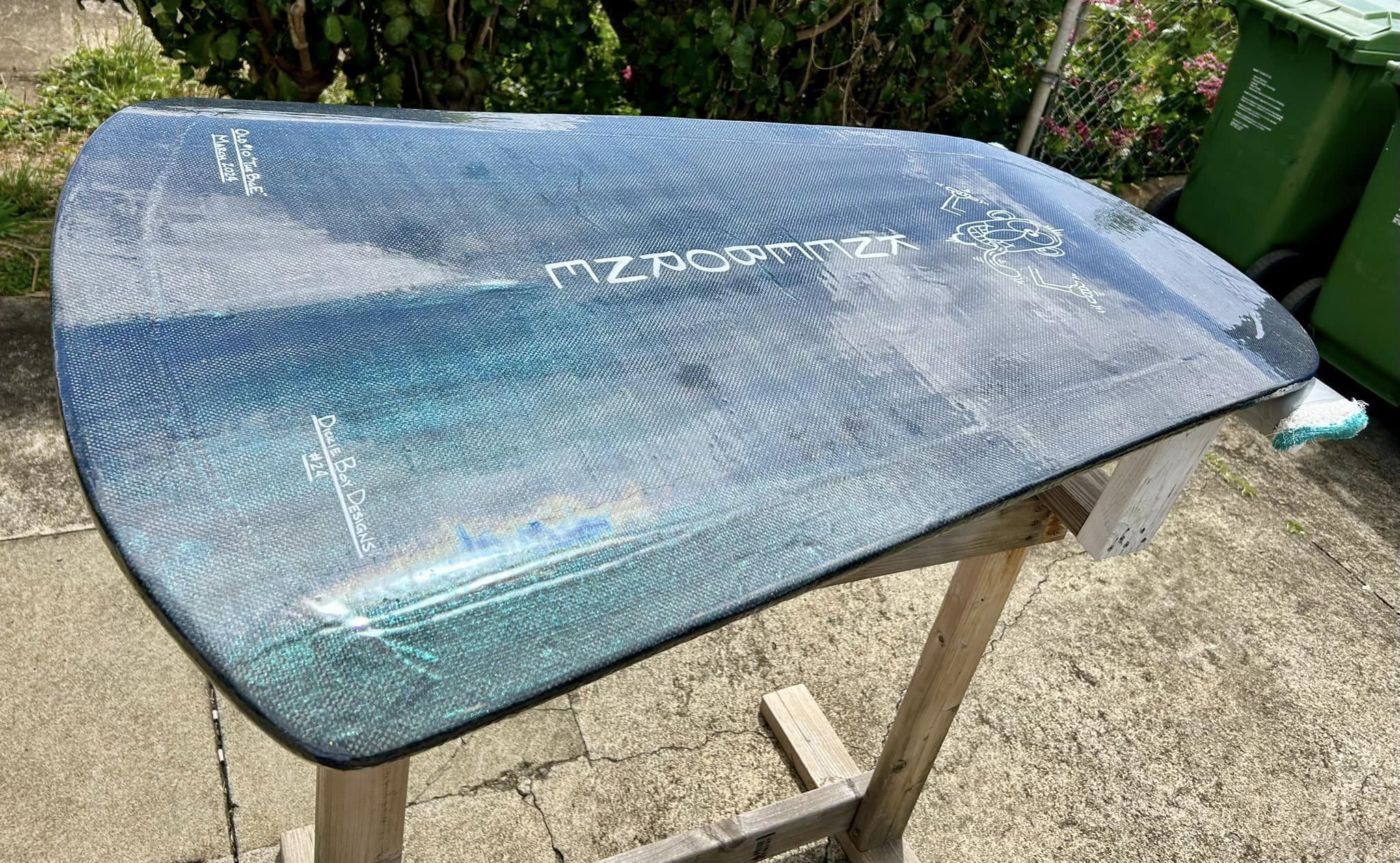 She was inspired by Uncle Harry’s design, and she holds an edge really well. The shape of the tail is designed so she can be steered from the tail. The nose is the accelerator.