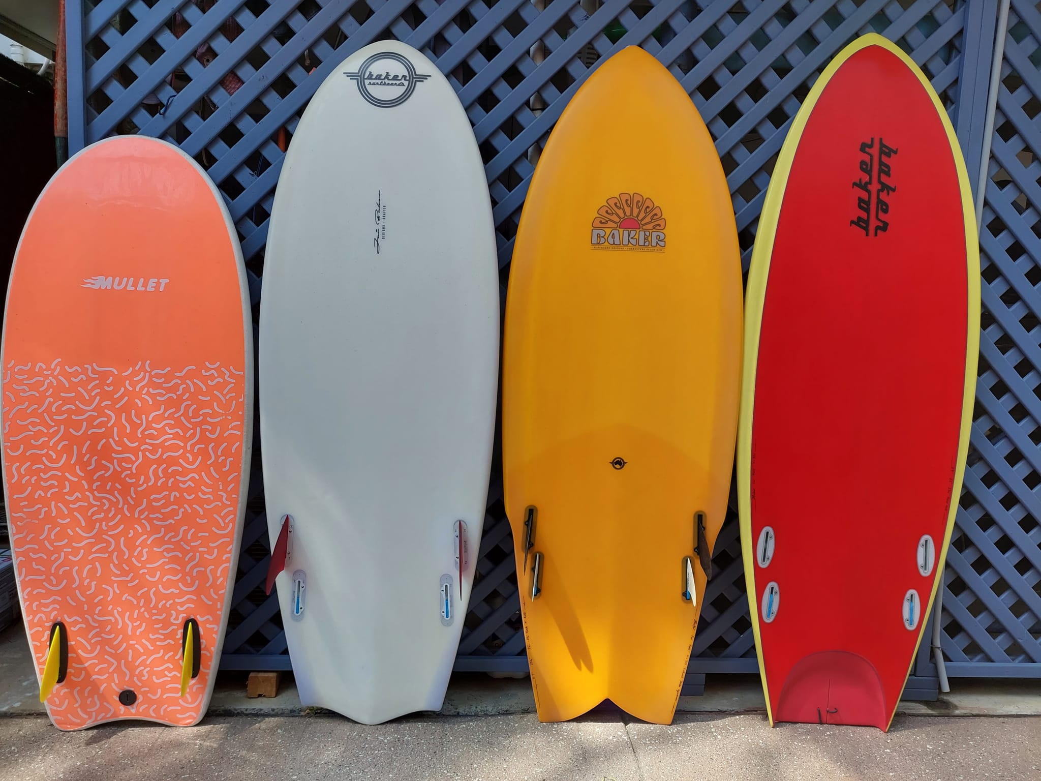 4) Wally Froiseth's twin finned board, with handle, which was developed in the 1950s and was replicated in the USA, Australia and elsewhere.