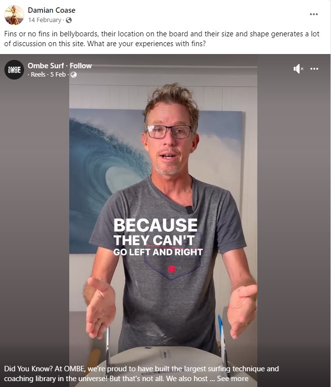 Sean Ross knows where and when to stick an edge, if you grew up surfing single fins in the 70's it will help. A lot of folk who were raised on multi finned boards haven't learnt how to stick a full rail edge turn off the bottom, ie they rely on the lateral fins instead. There is no right or wrong here, just a myriad of approaches. The wave is the thing😃 BTW waterskiing on a single can also teach you much about holding an edge and ice skating takes it to another level.