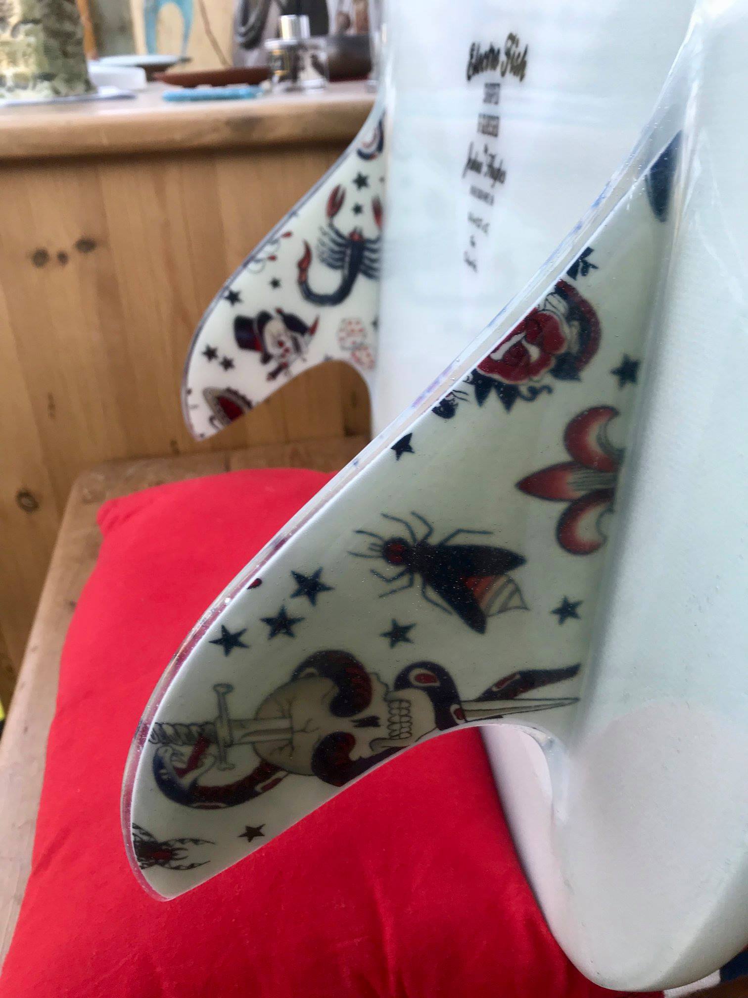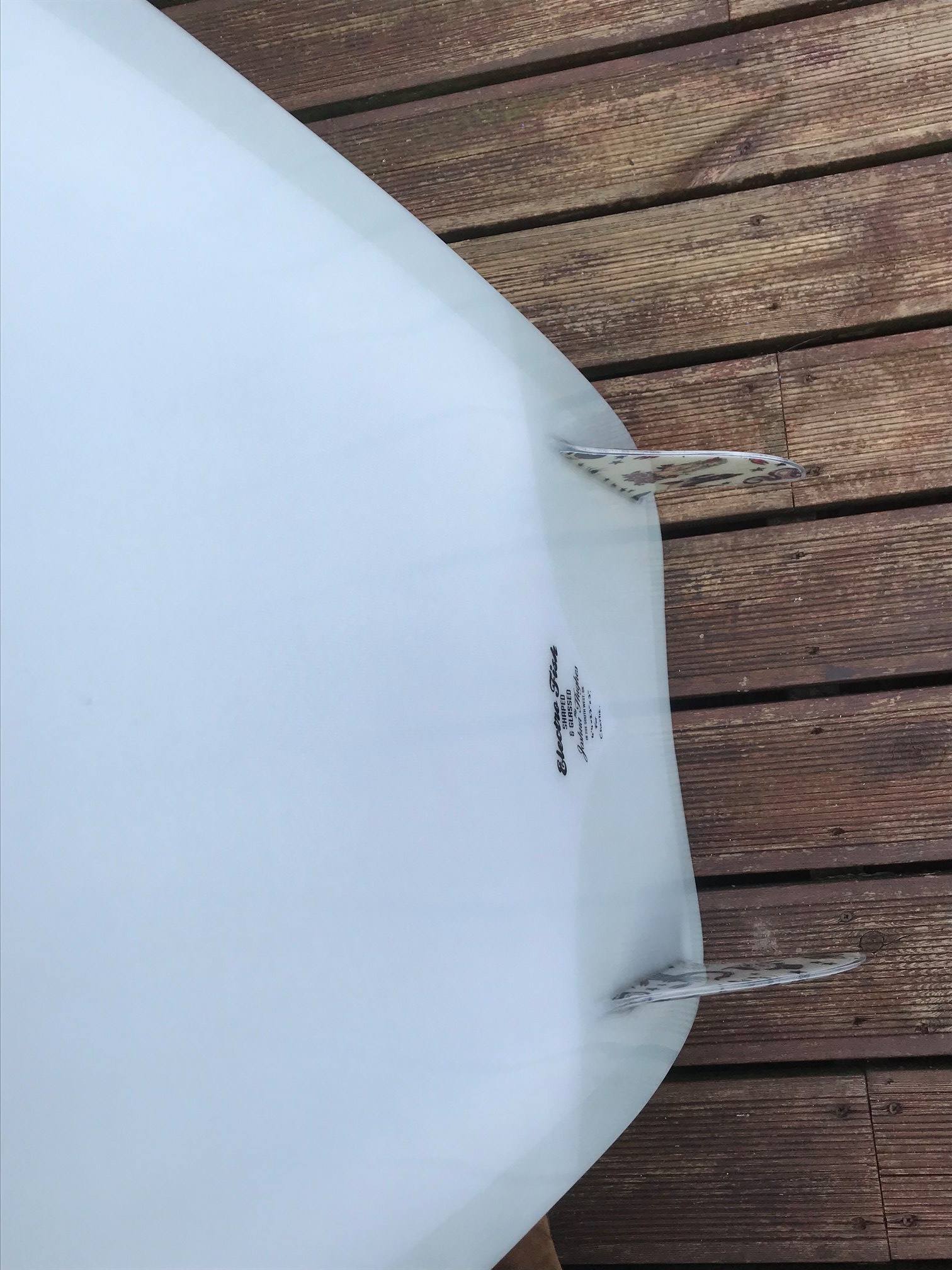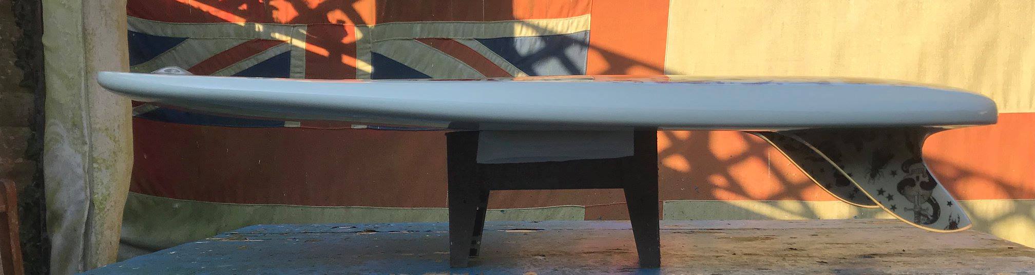 The board design was based on ones used in Hawaii in the late 60’s. So made to go in bigger surf. It absolutely flies in clean big waves. The fins give it hold on the drop and in the turns. It transitions from rail to rail easily and quickly. It also has a bit of weight (it’s glassed with Volan) so carries its speed across flat sections. The only downside is that your attached to a solid lump of glass and foam by your elbow leash when it all goes wrong…