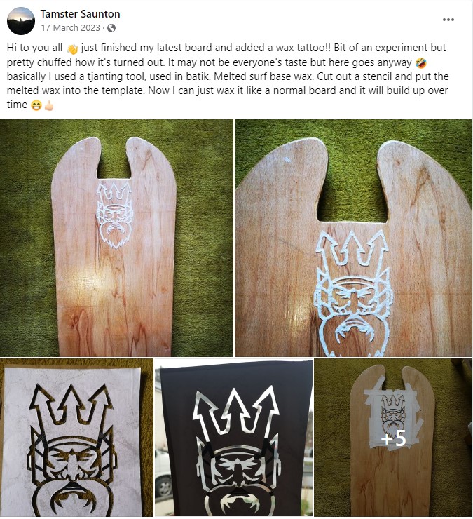 My thing was always using driftwood I found on Saunton, there is something about making something from a piece of wood that's been washed up that makes it feel more connected to the ocean. One day a beaut of a piece washed up and I drew a template for it and made my first board of 5, it was kind of like the ocean gave it too me.