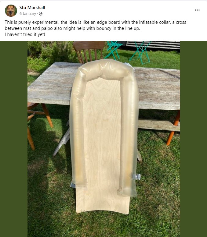 I have been riding this board a few times this past week and rode a couple prone this morning as the waves were small. This is the second edge board I have but the idea is nothing new apart from making the edge more prominent .....a board within a board.