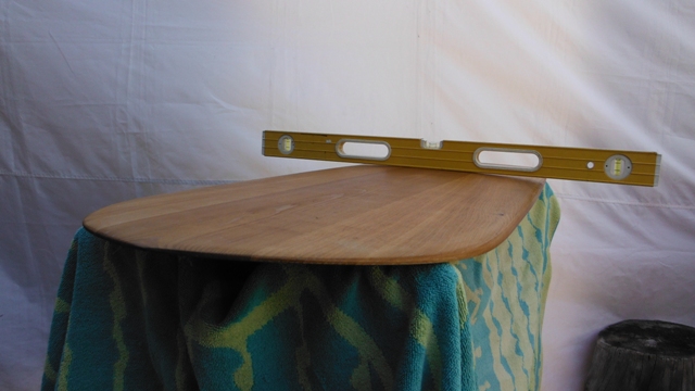 It has that soft convex roll the length of the board and no rocker. I suspect he used some cupping in the boards to get so much shape from fence boards.