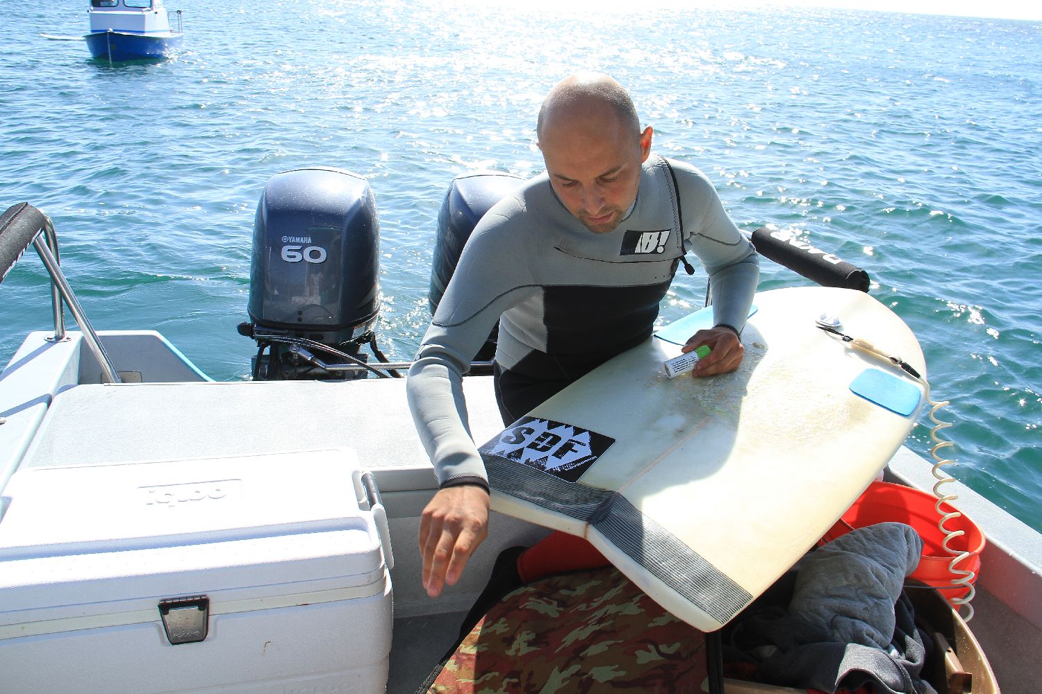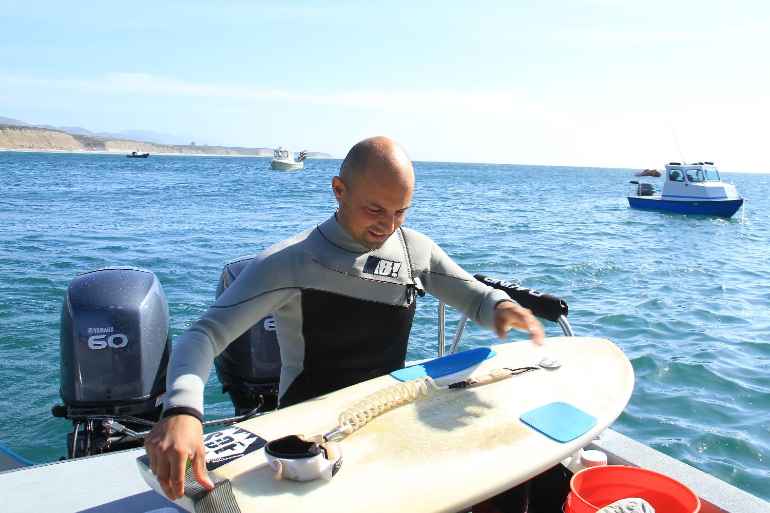 Long story short............I saw a new swell on the horizon so I got ahold of visiting Welsh national Keith Usher and arranged to meet him with the boat at 9am for a run up the coast to see what we could find...What a blast. I'd never met Keith before but we peppered him with questions as we planed north, and he was a fascinating guy to spend the day surfing with.