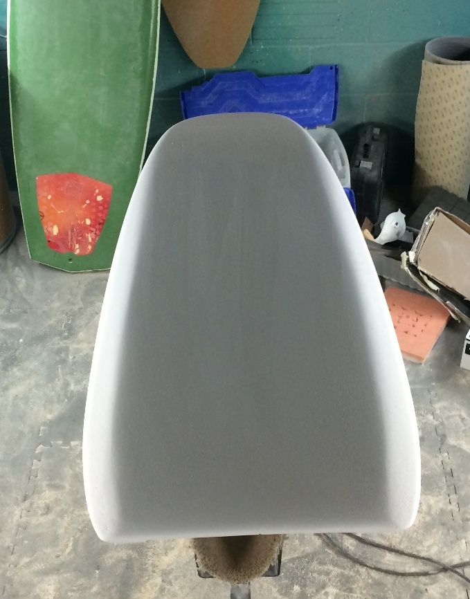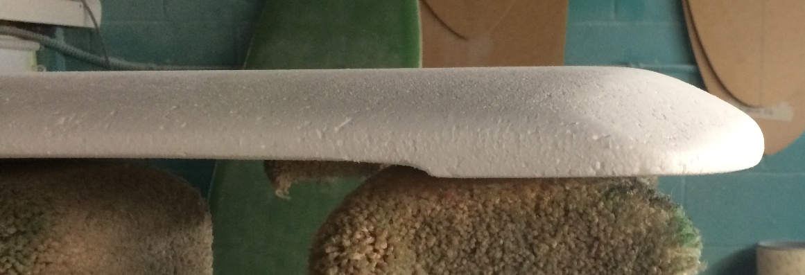 One of the advantages of the G3 design is that it can be easily extrapolated to accommodate riders of all sizes. This G3 was built for a rider who was 5-9/240lbs. The board has the same length, but was widened to 23" and thickened throughout (2-3/4" at thickest part). Volume was increased to 30L. Same eps/epoxy construction.