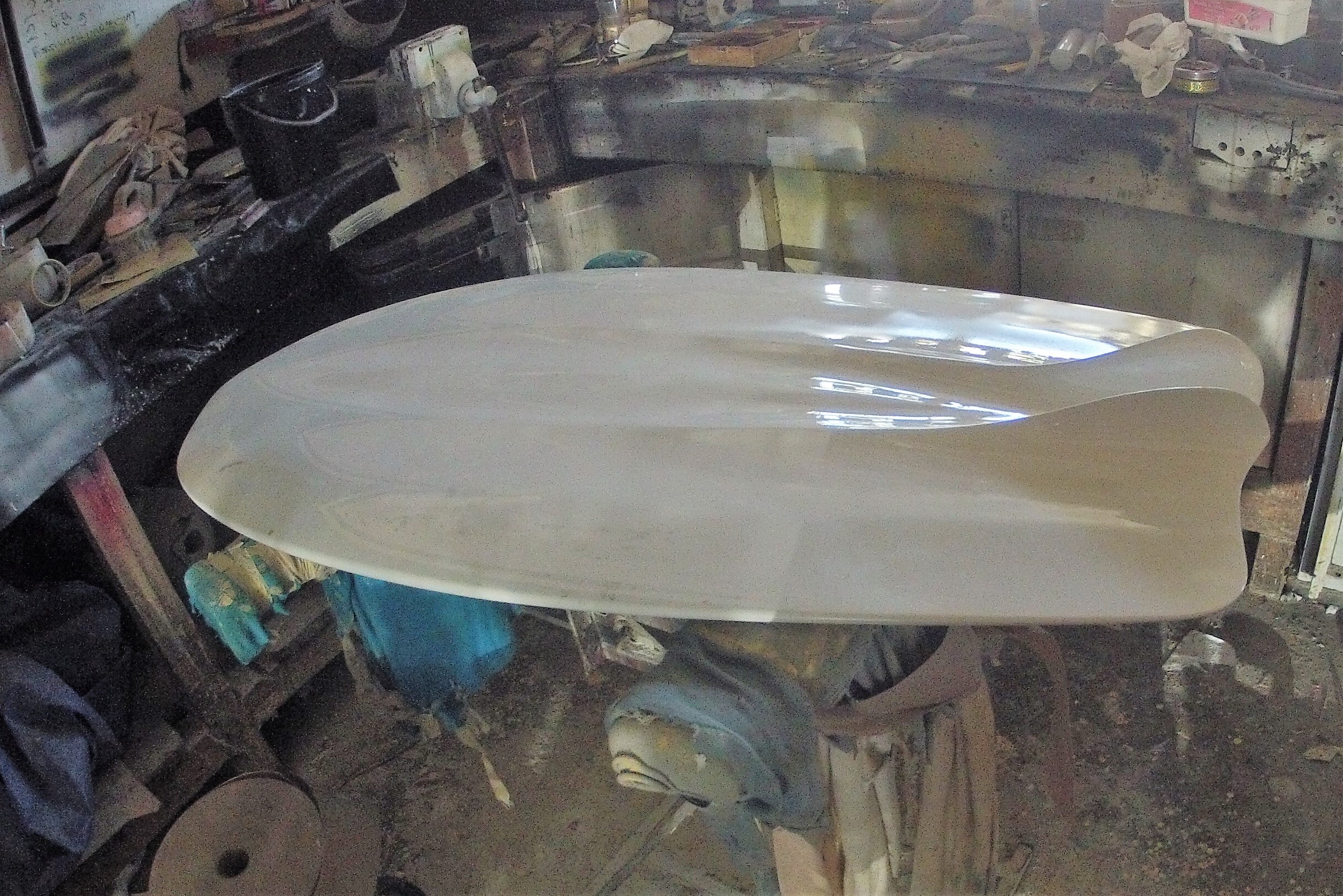 Very vaguely reminds me of obscure board I briefly had in mid '90's. I was molded from almost literally "bomb proof" automobile bumper foam and had chine rails, molded "fins" like on your original posted above (though closer to 1/2 way between midline and rails), and very slightly dished deck. Problem was it had plenty of volume and then some, for a 300 pound Samoan. And I weigh about 125 lbs. It was so dense I could not cut or sand it to thin it, at least not with hand tools. Some sort of free hand hotwire would have possibly saved the day. I never could handle the volume enough in water to get any sort of feel for how it rode.
