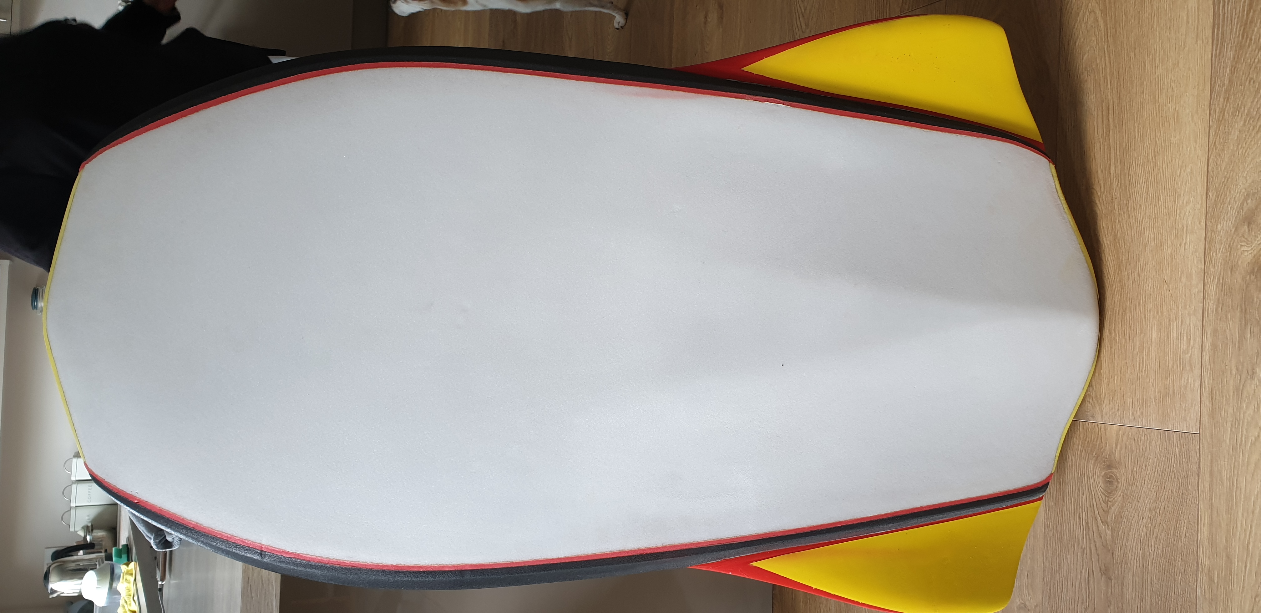 I have relocated from the surf paradise Durban to the landlocked city of York UK to be with my family, also having been uninploud for 6 years in South Africa to get a job. The urge to build boards has hit me hard, although 4 hr test sessions in 20 c water are over. I need advice on adapting to cold water. this is my first UK board the immigrant board , it’s not made from the best body board materials its all local diy stuff ,the core is two layers 6mm xps insulation board , 2 layers 6oz cloth in the middle single layer on the outside,15 mm polyethylene layers top and bottom and 5mm foam to cover with 3mm bumper strips. The idea was to have some twisting flex with great bouncy, low drag high lift wing rails .hopefully the first test session will be in Cornwall in a week’s time. This is a totally new build method to me I hope it holds together. To build with epoxy in the UK you have to use an oven I got a great idea from a YouTube thread